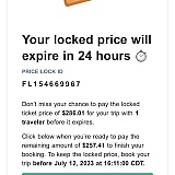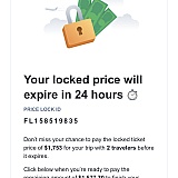 I locked in the price and payed a down payment of $175.24( balance $1577.30). I received a price confirmation. When I went to finish my booking, they change the price as well as they wanted to charge for a carry on bag for $157 each. Not to mention check in was being charged at $357 and change for the seat insurance?
