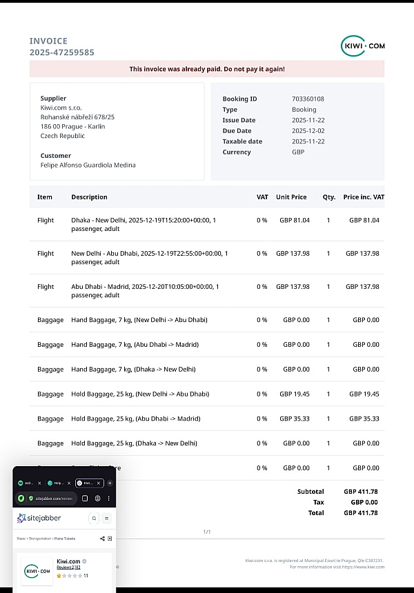 Answer: There is no doubt that Kiwi.com is a scam. If you want to get your money back, then email the US Department of Transportation (douglas dot e dot davis at dot.gov) and CC the CEO of Kiwi.com (oliver dot dlouhy at kiwi.com), the Vice-President of Customer Services (Petra dot Reiter at kiwi.com), and the head of customer servcies for the EU (anna dot cavazzini at europarl.europa.eu) Good luck and do not use them again.
