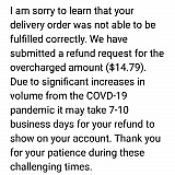 While I waited around an hour for any sign of life from the order, I received a notification that the shopper had begun. Shortly after, I received two separate notifications letting me know an item will be refunded due to it not being in stock. I DID specify that they could pick an alternative for the item as it's real easy to find a replacement cheese for a mild cheddar, but the shopper decided they didn't want to do that. In a little bit, I received the notification that the shopper was done and that it would be delivered.