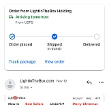 The amount of solicitation that I get everyday from light in the box is horrible,,, in the neighborhood of 20 to 30 text emails a day that's ridiculous trying to sell me things when I can't even get my stuff delivered to it that I purchased