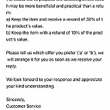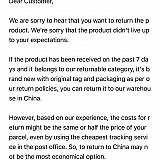 This is a chinese company and no one reads your communications about your return!