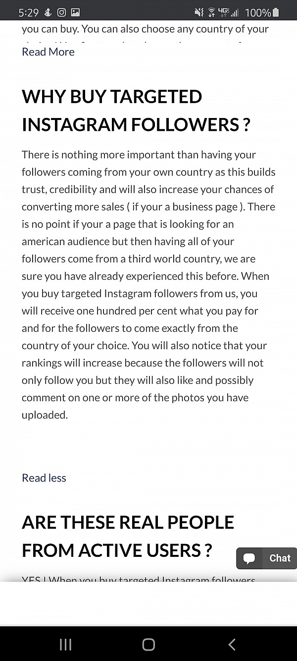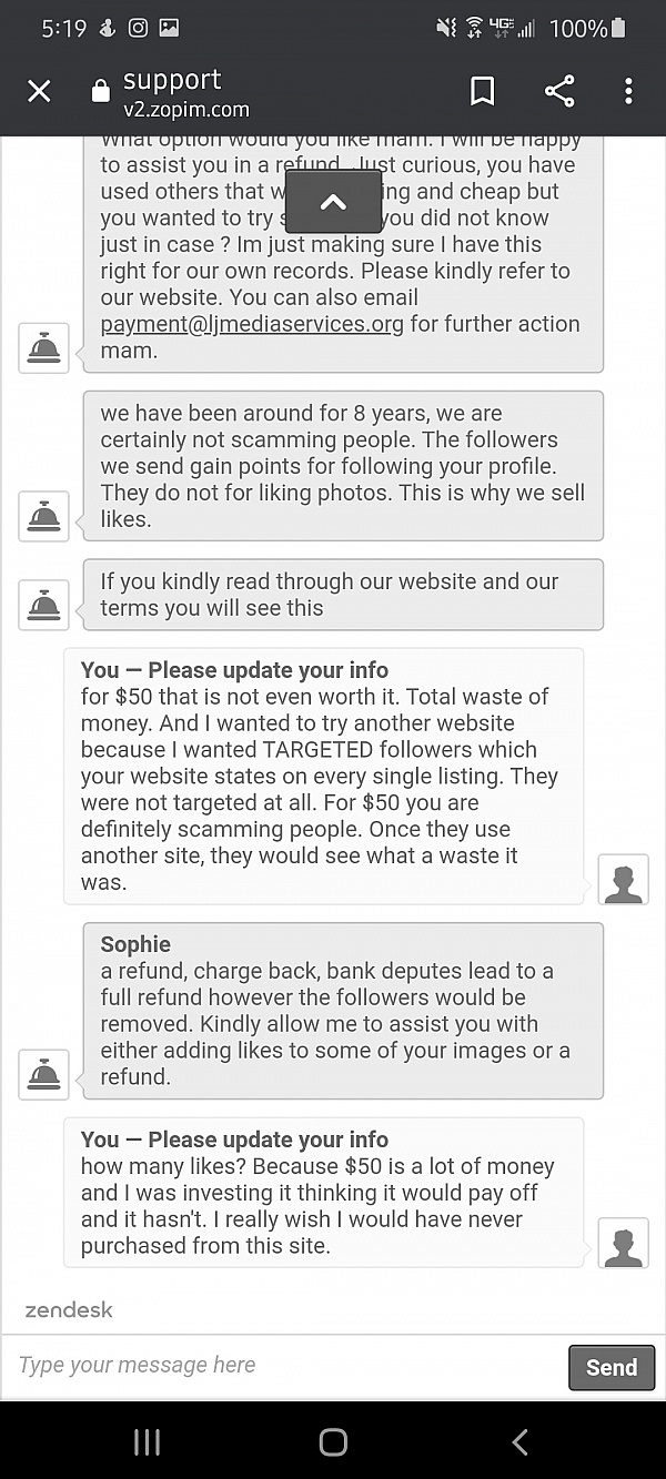 I ordered these followers that were supposed to be targeted. They go on and on with how it's important to have followers from your own country and how they have such great quality followers. They ask for your country and then guess what? They give you users from 3rd world countries instead! Not at all what they advertise. And then those followers don't even like your posts! That is a complete waste of a follower and not worth the $50 they charged me just for 3k followers. Other sites are so much better and don't lie when they send the followers. Then when I asked for a refund, they said it would ban my account if they did that. They gave me 2k likes spread across 4 or 5 pics which is a sad excuse for a fix to the issue. It is not even close to being worth $50 and all these shell accounts are just hurting my engagement so I'm planning on blocking them all myself and then disputing the charge.