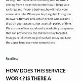 This is a 100% Scam company, they are EXTREMELY expensive cause they say that they provide real targeted followers from anywhere which country You want, they don't deliver 1 follower and they make it very difficult at first You have to email them several times and show reciets of your order even tho the send you a confirmation mail when You pay that they started working on your order, DON'T BUY FROM THEM IT'S 100% SCAM!