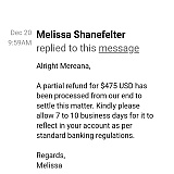 - MELISSA SHANEFELTER ( was suppose to refund me)
