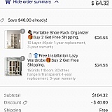 I ordered Shoerack an and closet never received them even though they got me a tracking number which shows items was shipped to another city. Emailed them never heard back.