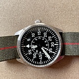 Yet another Islander watch in my collection. This is a cool one. It's an interesting riff on an A-dial flieger with the larger 3,6,9 numerals and the sort-of sector dial. The blue hands are painted but look good. I threw it on a single-pass NATO but the bracelet is quite serviceable. All in all, a good purchase at a great price.