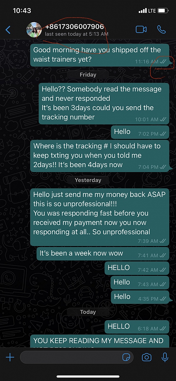 I PAID IN FULL $700 FOR A BULF ORDER AND NOW MS. Emily is reading every message I send but is not responding at all. This is a SCAMM ITS BEEN 1MONTH NOW AND STILL NO RESPONSE SMH. I REPEAT THIS IS A SCAM. THE PICTURE BELOW SHOWS WHERE SHE IS READING THEM & WHEN SHE LAST WAS LOGGED IN