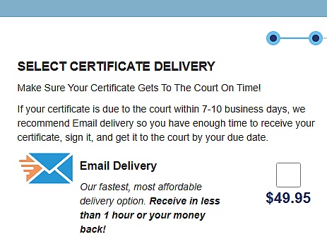 Answer: That depends on how much you pay. For thirty dollars you can get it quickly. Without paying you won't get an email at all. The only way to get it without paying is snail mail, 7-10 business days.