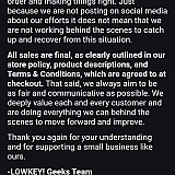 I ordered a sweater from the Mm over a year ago for my son who has grown a lot since then. They have given me the run around for months with a sob story about employee drama and they are working as hard as they can to fill ordered. Meanwhile they are still offering preorders for new merch. This last correspondence I had with them demanding my money back seeing that if it ever did come it would no longer fit. So they made a shipping label so it would send the email saying it had shipped. It has not. All they did was create a label. Do not waste your money. These ppl are thieves.