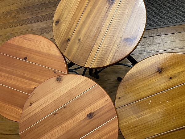 2) The wooden seats were stained a different color than our other two and have a matte finish instead of high gloss. The new color and finish wouldn't bother me if the other two matched!