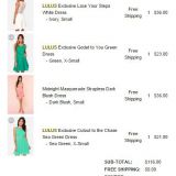 Lulus is simply fabulous! The prices range from $14-300+, but there is always something you can find and the best thing is that if your eying something one week it may be on sale the next. I have ordered lovely things from here and since I have gained some weight I was pleased when I fit into a small with the maxi dress I bought. Although, it didn't necessarily work for another dress because it had a different fit, with me being short the small was too small but the medium was too big and I would of had to get it fitted. So I was bummed I wasn't skinnier because the small would of been perfect, but in my eyes there is always something better. I am happy to say that each time I ordered a different size and returned it it was super easy! No stress, no hassle, and there are always coupons, as well as, a wonderful deal they send you to your email after you shop with them. The quality is perfect and this is coming from someone who is super picky and looks at every stitch to make sure it isn't falling apart. I haven't had one problem with Lulus, which makes it so easy and the reason why I love shopping online :) HIGHLY RECOMMENDED =D Happy Shopping!
