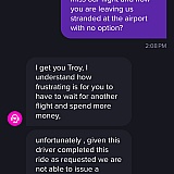 Scheduled a pickup with Lyft on Thursday to be picked up in Liveoak, Florida on Monday morning at 4:00 a.m. They confirmed it with us and never showed up. They even sent messages that said they were 15 minutes away and then 1 minute away, probably computer generated, and never showed! We paid a taxi $225.00 to take us to the airport in Valdosta, Georgia, and missed our flight anyway. The next flight didn't leave until 9 hours later. The taxi driver said Lyft doesn't even serve Liveoak, Florida. So...they literally knew for 4 days that they were not going to come and yet never emailed or called us. This has been a nightmare. This is a company like many other companies in this country who are only out to make money and don't have a shred of integrity! I called customer support, who said it was for service dog issues which was the only number I could find for them, and they offered apologies only. That's another thing companies with no integrity do a lot of, apologize... But they won't offer any compensation or ever fix the issue. Don't ever use this company!