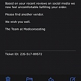 I was so excited to purchase a chair from this company! When I bought it I was informed that it would be shipped in 10 to 14 business days. After I hadn't received it I emailed them and they informed me that it would be shipped by the end of the month. I emailed them again at the end of the month at which time they informed me it would be shipped in the middle of October. I recently emailed them and they informed me that it would be shipped mid November. They never reached out to me to tell me that the shipping will be delayed I had to contact them. When you call in to talk to someone it says that they are experiencing Short delays in shipping. 2 1/2 months is not a short delay! In addition when I went to look at the shipping times as if I was purchasing a new chair it's still says 10 to 14 days. I believe this is false advertising. If they know that there are delays in shipping because of Covid which is understandable, they should be transparent about that when you order the chair. After I complained and asked to speak to a manager, they canceled my order. I have purchased things from several companies that have delays because of Covid. Again, that is completely understandable but these companies are transparent about it where Madison seating is not. I am so disappointed in the customer service and that they canceled my order without asking me if I would like my order canceled first. I would highly recommend that you do not do business with this company. If anything, I hope that they update their website and their phone to be honest with consumers. I also hope if there's going to be delays that they reach out to the consumer ahead of time and let them know. After I emailed them about canceling my order and told them I never asked to cancel the order, they emailed me back stating that because of my reviews they were canceling my order. I feel like canceling my order was a breach of contract.