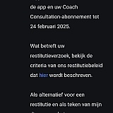 Ik heb een abonnement gekozen van 18 euro. Tegelijk wordt er naast de 18 euro ook 36 en 49 euro afgeschreven. Ik heb mij zogenaamd opgegeven voor tips en een personal coach. Niets van waar en ook geen optie die ik kon aanvinken! Als antwoord op restitutie krijg ik een nee! Er wordt mij 3 maanden extra aangeboden. Dit wil ik helemaal niet!