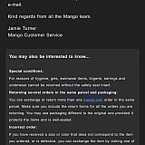 Worst customer experience, no answer on emails, their customer service center never answers too. Some products look totally different from the photo online and in real life. I never, EVER will buy again from Mango and would recommend doing the same to all my acquaintances