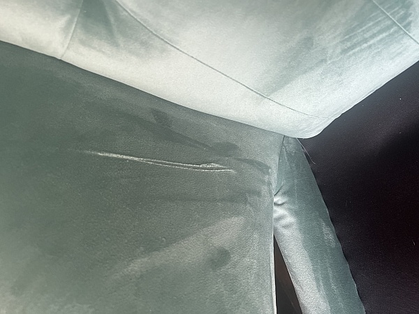 I ordered the Papa Bear Chair in Neptune velvet. Swatches for this aren't available on their site. It was supposed to be a deep, moody green/blue with MCM medium tone wood. What was delivered is a dark mahogany colored wood with a hint of cherry wood tone, and a bright turquoise fabric that is closer to a microsuede fabric finish. I posted a review on their site, so others might be warned they would wait for months only to receive a disappointment. Also, the fabric on the inside of the wings had a deep scratch on the left and a smaller one on the right. These weren't in contact with anything during transit, so QC must've approved and shipped this damaged monstrosity anyway. Sent a ton of pics to customer service. Hopefully they arrange a return, but from the other reviews, this doesn't sound promising.