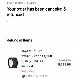 As for ordering from them easy but giving you your refund back on my order going on almost a month and still no refund they keep telling me accounting will get with me and that's it was told by them should see it in 7-10 days back on 9-9-22 when I canceled it was in need of these tires for my truck but they we're on national back order not there fault but returning my refund there are not good