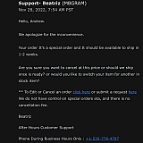 Beatriz is who I have been emailing with. AVOID THIS PLACE. Any review that isn't 1 star is a lie. They don't ship you anything. This is a fraudulent website. DO NOT TRUST BEATRIZ