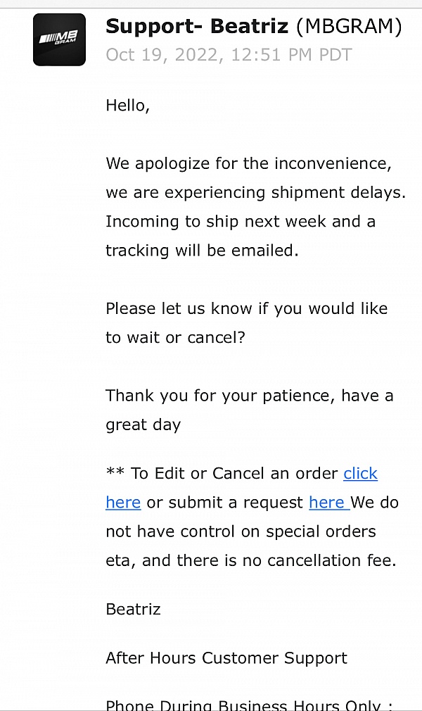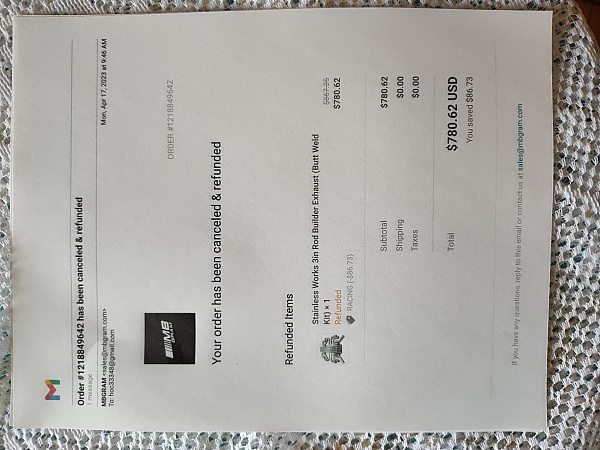 I cancel. They email me saying in 7-10 business days the money will post back to my account. 10 business days later… nothing has posted. I used my USAA credit card for this order and I just opened a dispute with them. I know I will get my money back from USAA but these crooks were never going to ship me any rims and were never going to refund my money.