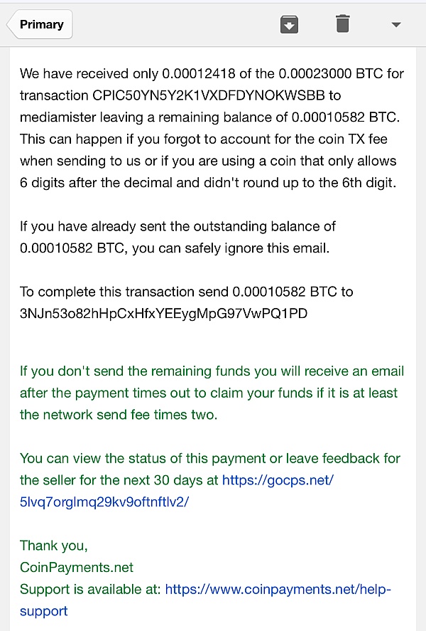 Please contact our support team with your order ID so we can check the details and provide the appropriate resolution.