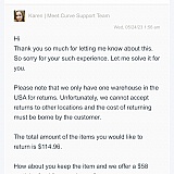 Their return policy is a scam, they give you the run around refusing to give you a return address offering only a partial refund.