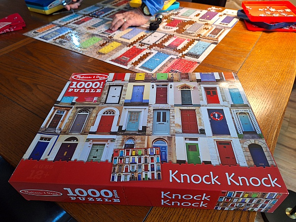 The KNOCK KNOCK puzzle was an even harder challenge because they have no map to follow. They have blocks over the whole bottom row of doors, and the 2 top left hand corner dooes are covered. The box cover would be fine IF there was a map inside to follow.