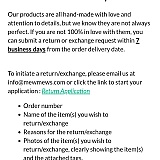 Disappointed I initiated a return, within their 7 day policy. I received an email back stating that they needed photos and the garments name (something I had already given via their online form).