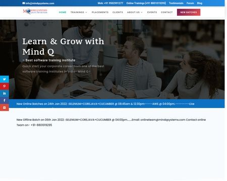 Mind Q Systems is a Software Training Institute in Hyderabad and Bangalore offering courses on Testing tools, selenium, java, oracle, Manual Testing, Angular, Python, SAP, Devops etc.to Job Seekers, Professionals, Business Owners, and Students. We have highly qualified trainers with years of real-time experience. Our institute is provided with proper infrastructural intellectual facilities that aid the individuals in concentrating on the class and grasping the concepts better. Our small and specifically designed batches give our trainers the best possibility of focusing on each trainee and make an impact on their learning.
