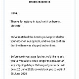 Answer: You can verify via the tracking link in your confirmation email Brent. If questions, do get in touch via moteefe.com/faq