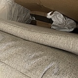 Waited 7 weeks for the sectional couch, it was delivered 8/1/20., charged for(white glove). What a joke! First thing out of Delivery drivers mouth, no take off plastic, his exact words!, they shoved the furniture in the house took pictures of it while I was still in the plastic, when we were going to try to take some plastic off no no he said, I have to take pictures with the plastic on, as he was bringing one piece and he tore the bottom of the couch and said no problem it doesn't show anyway, we took the plastic off of one of the couches as they were leaving and noticed damage, tried to call to them they literally ran to the truck hit the gas and took off. We noticed the three pieces we opened all had damage. Did not bother opening the rest of them up. Called Bob's for a complete refund but they said they cannot refund the white glove delivery will have to haggle with management what a joke. The picture show separated material with cheap flimsy staples the other picture can't really tell but the frame I think it's made out of wood or cardboard is completely broken what a piece of junk