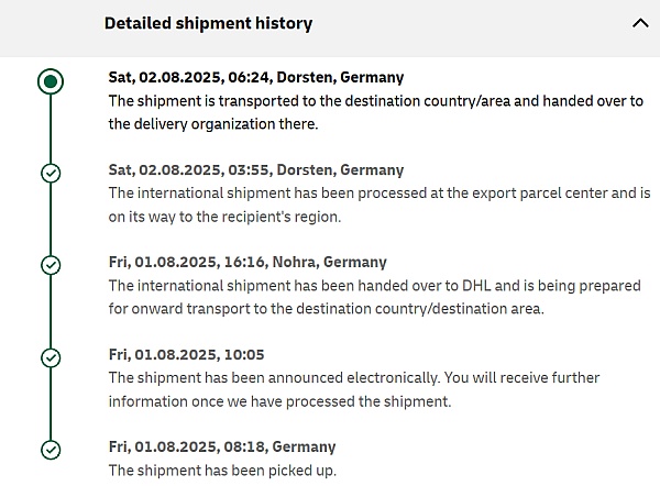 With Germany, I couldn't be happier. They offer quick and effective shipping both from and through Germany to other countries. They provide timely and friendly client service. I have been a happy client for many years!