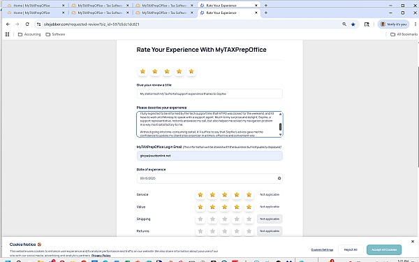 My Tax Prep Office enjoys a strong reputation for its customer service and user-friendly software, with many clients praising the staff's patience, attentiveness, and bilingual support. Customers appreciate the detailed explanations provided during training sessions and the overall value of the software compared to competitors. However, some concerns were raised regarding communication about IRS payment statuses and the need for more proactive updates. Overall, the sentiment reflects high customer satisfaction, with a commitment to continuous improvement and responsiveness to user feedback.