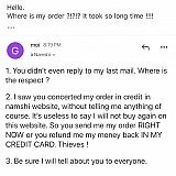 So, one week after I sent a mail again to ask where was my order. NO ANSWER. Finally I received an automatic mail to inform me my order was refund AS CREDIT ON NAMSHI.COM. Is it a joke or what? Do they really think I want to continue to buy on their website? GIVE ME MY MONEY BACK THIEVES!