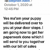It goes to show you that you have to do your research and ask questions and really get to know the person because the dog I got is cute and I am so happy. I got her in August of 2019 and the owner was very professional. She is 100% honest.