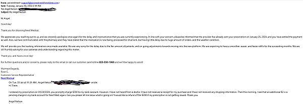 Two months of "this has been escalated and apologies" and "Reaching out to the pharmacy"! Lies all lies! I am out of pocket and have requested refund. I have escalated to my attorney at this point. They even asked for my CC records of payments. Obviously there accounting department doesn't keep records? It has been the most frustrating company to deal with. The first six months were decent (although a few misc. Charges of $1 - $18) but since January nothing!