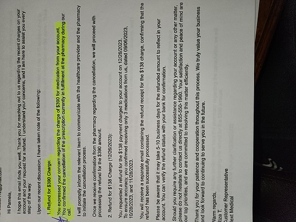 Please do not get involved in this company. They will ghost charge your account. When they're having a shortage you will still be charged. I waited from Nov to Feb all the while asking for a refund of the 390 dollar medication charge. They kept telling me 24 to 48 hrs we will hear back from the pharmacy... every day