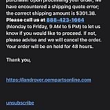 It is clear to me Deb, and OEM Vehicle Parts, are running a scheme to rip-off consumers of their hard-earned money. Avoid dealing with anyone associated with this entity. Avoid this aweful company. They will steal your money and waste your time! AVOID AT ALL COSTS!