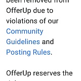 So use OfferUp at your own risk, and don't be surprised when you get a notice of being banned with no detail and without validation.