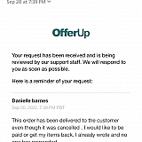 I sold an item on offerup valued $20. Brand new sealed in packaging. The buyer bought it for 8.00 and received it. Buyer messaged me telling me her dogs ate the package and ruined it. She requested a refund from offerup. Offerup gave her back her money and showed how the package was actually not ruined, it was still new in the package. I contacted offer up and got no response on how the buyer gets to keep the item and get the money back. OFFER UP HELPED THE BUYER STEAL FROM ME AND SCAMMED ME.