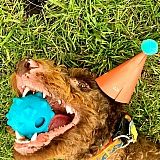 JaX & OLiE are My Chocolate Labradoodle brothers. I ordered a cake for their 1st Birthday. They got hats dog tags and a Candle