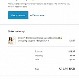 I saw an online ad for Ovaon "the best bra ever". I ordered according to the provided size chart. It took over a month to arrive, the package was from " Jess" and there was no company packaging or even a shipping receipt, or return/ contact/ business information. Nothing, just the item.