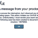 Terrible Experience. I was kicked out of my online exam for leaving my desk. The issue is that I never left my screen. I was given a warning by the proctor, I replied that I did not leave my desk and didn't know what they were talking about. He then cleared the pop up message and I assumed he just made a mistake/clicked the wrong button. 10 minutes later into the exam I was booted. I called for an explanation and the rep said the proctor did not leave a reason. I paid a babysitter $200 to watch my 3 kids. I begged them to watch my recording and reinstate the exam. The answer: it takes 5 business days to review and I will get an email. I can't get over how bizarre this all was. I hate to bring race up, but I'm not sure what other reason a proctor just boots someone for something they didn't do and doesn't leave a detailed account for why he did, just left the reason blank.
