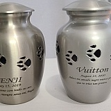 In May 2019 I bought a Small Pewter Paw Print Cremation Urn for my doggie Benji. The urn was perfect the finish on the metal were great. Unfortunately om August 2020 I lost another of my babies and I ordered the same Urn for him. When I received the second one I noticed the metal material wasn't the same quality also looks like it's been paint to look like silver and additional to that I paid $13 more for the same product. Company replied me before they were using brass and now they are using aluminum. The aluminum looks really ugly and over that Perfect Memorial is charging more this cheap material. I was amazed for the quality of their product and how it looks now not anymore. Also, they told was slightly different in color and it's not slightly different is a huge different(on the pic left one brass, right one aluminum). They offer me to return it but I have to pay for the return shipping and would not get my money for the engrave. It's a shame that such a good company compromise their quality and cosmetic look of their products to save come money which it's not make sense because they charge pretty well. I know I am only one of customer but hope someone on the operation management read this and considere to go back to brass urn which were great quality item.