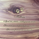 My 16 years old dog passed away and we were devastated. I stumbled onto this site to purchase a wooden photo pet urn. I am so happy with the finished product! The engraving is done so nicely and I love that there were so many options to pick from such as putting your pets photo in a heart or an oval. The wood is a great quality also. I would recommend this company for your pets needs. Fast shipping! I would definitely buy from again! Thank you!