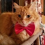 Purchased red bowtie for my cat Tuffy and he likes wearing it. It's adjustable and light weight for a perfect fit! Buying the blue one next. Very happy with my purchase!