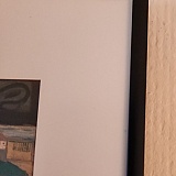 2. One large frame is bowed and consequently does not rest flat against the wall. (I have photo)