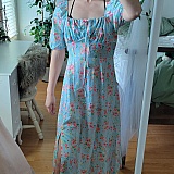 I ordered the denim riffel sleeve dress that was delivered LATE and from China (not expected at all) this site is an absolute scam. Portraying itself as an american company however delivering outrageous products. Ny dress was not the material thatvwas described, sleeves were way shorter then they were advertized, sizing was off AND finger prints were in the acid wash.