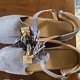 The description of the sandals I bought said in bold letters breathable leather. If you go all the way to the bottom of the page then you see that it is not real leather or suede. When I opened the bag the shoes came in the odor was of cheap plastic & rubber. I'm chemically sensitive so I closed the bag up and contacted the company. After a few days they responded with a lot of mumbo jumbo. My last response from them said since there was so defect that I could prove that return shipping costs would be on me, and that returning them was risky as they might get lost! These were not $10 or even $20 shoes! Plus they look very cheap! The purchase price was $35. I'm livid.