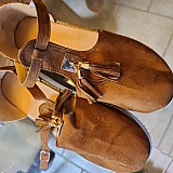 The strap on the top is too big and the sole too small. Dollar store quality at department store prices. Horrible customer service! They offered 10% on my next purchase even though their site offers a full refund. They want YOU to pay to ship it back to China! Why would I want anything else from them? I can't even give away what I paid for.