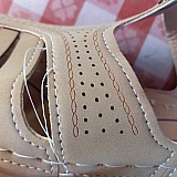 Sandals look very compact-even it seemed that they are small. But actually go in size. Very light, the seams are neat. A small stable platform. Although it's a hassle to choose the right size, the sandals are worth my time and monies! Recommend!